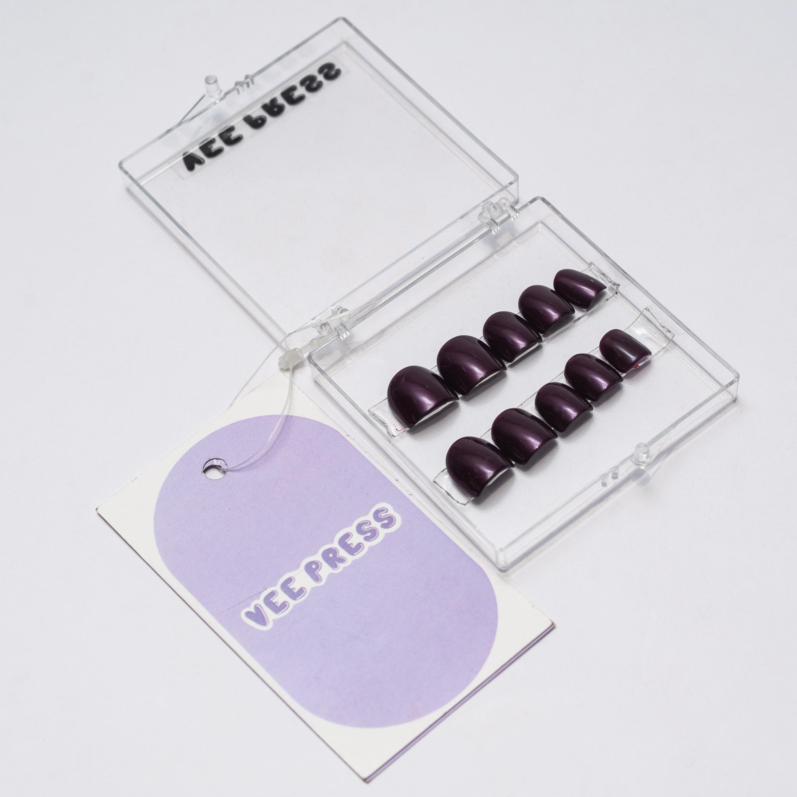 BLACKCURRANT BLISS : THESE PERFECT PRESONS ARE RICH , DEEP WITH OPAQUE COVERAGE OF PURPLE RED SHADE INSPIRED BY BLACKCURRNT FRUIT .THESE NAIL ARE PERFECT FOR WINTER AND FALL SEEKING BOLD SOPHISTICATED COLOR