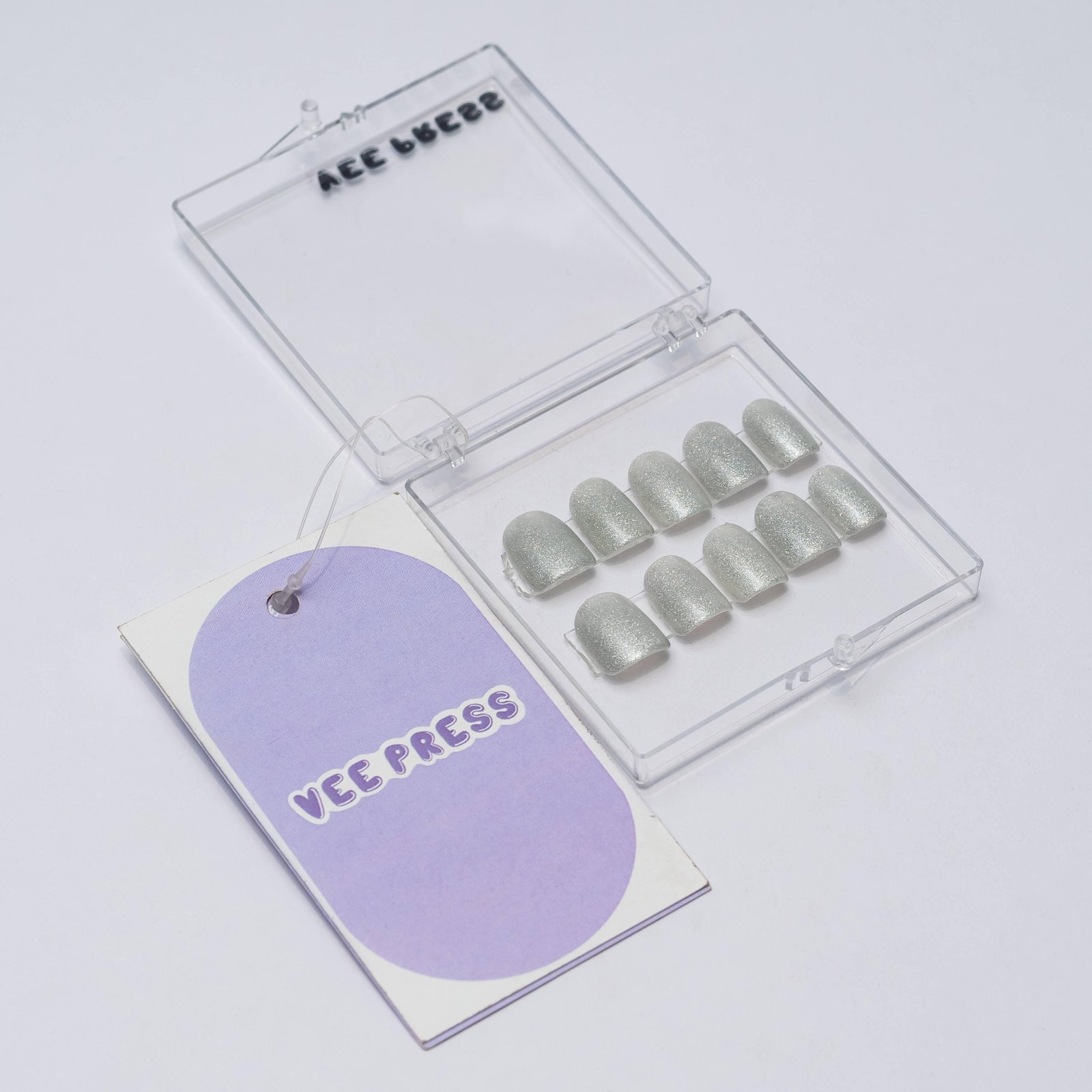 Crystal Silver Press-On Nails Add a touch of sparkle with Vee Nails' Crystal Silver press-on nails, featuring stunning silver glitter that shines in the light. These nails are perfect for anyone who wants to add a glamorous and chic look to their hands without the hassle of salon visits. Where to Use: These glittery silver nails are perfect for any occasion, whether it's a special celebration, a night out, or even a casual get-together. They're ideal for weddings, parties, or anytime you want your nails to sparkle and shine. Perfect for adding a bit of glam to your everyday style!