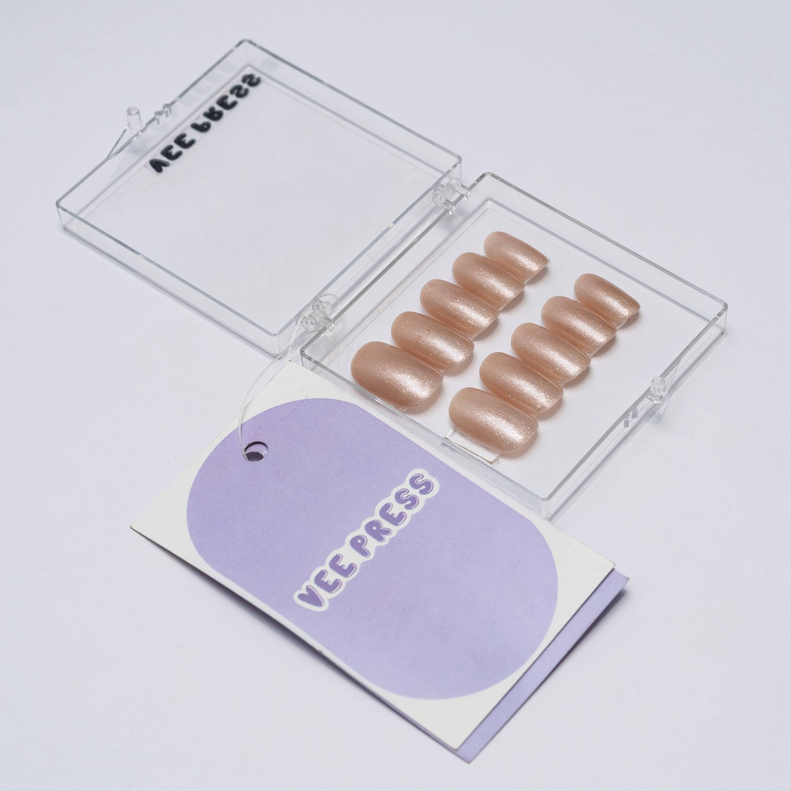 Dusty Gold Press-On Nails Add a touch of sparkle and elegance with our Dusty Gold Press-On Nails. These nails feature a stunning dusty champagne glitter that catches the light and gives your nails a glamorous, sparkling finish. Perfect for adding a bit of luxury to your look, whether you're heading to a special event or just want to treat yourself. How to Use: Clean your nails with a gentle wipe to remove any oils or dirt. Choose the right size press-on nails for each of your fingers. Apply a small amount of adhesive to your natural nails. Press each nail onto your natural nail, holding it in place for a few seconds to ensure a strong bond. Enjoy your stunning, glittery nails! Where to Use: These Dusty Gold press-on nails are perfect for any occasion—whether it’s a night out, a wedding, a party, or just when you want to feel extra fabulous. They're easy to apply and remove, making them ideal for anyone who loves a quick and stylish nail solution.