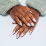 Gently peel off the adhesive backing and press the nails onto your natural nails.