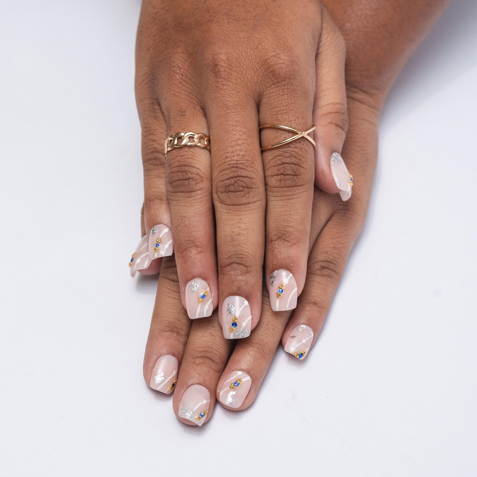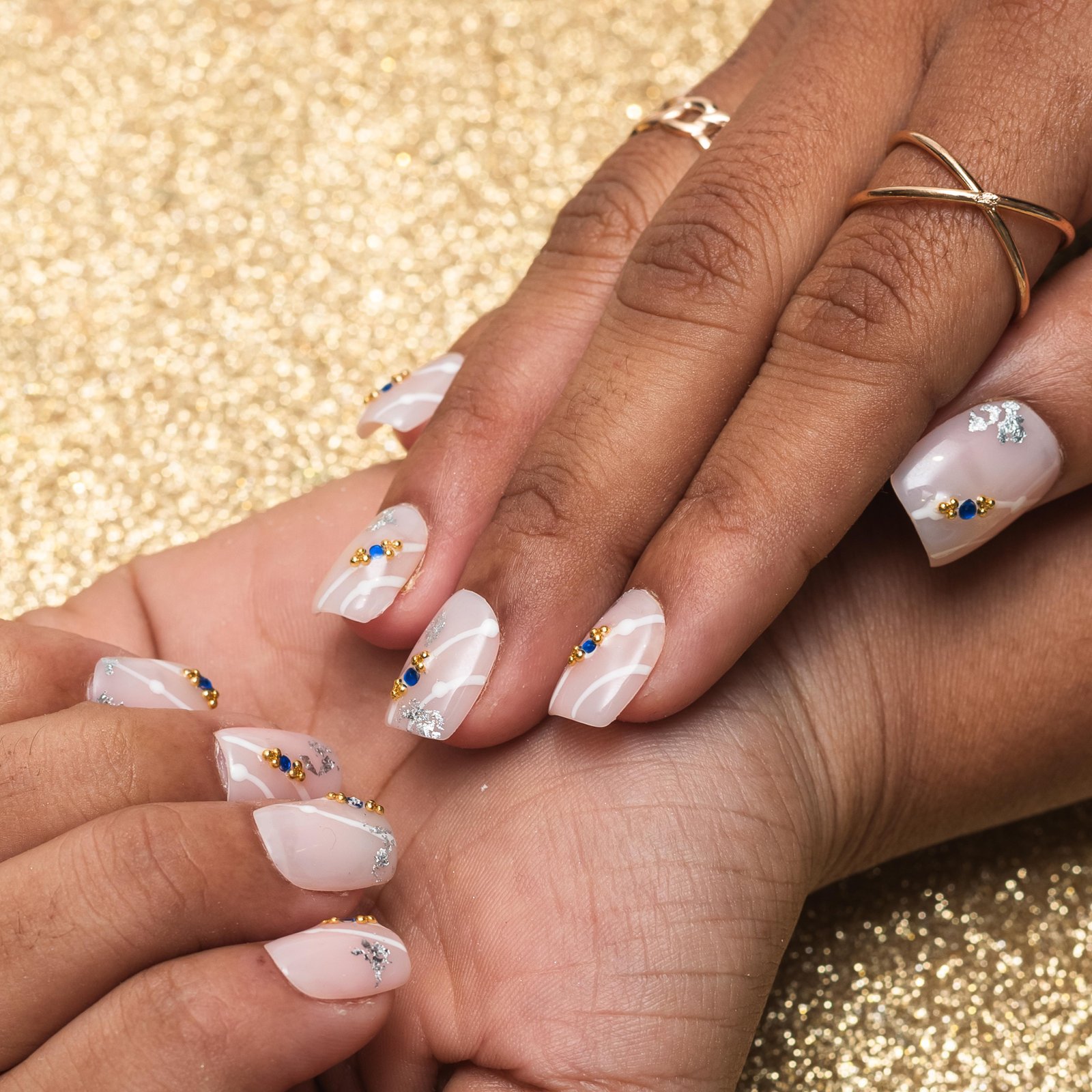 Bring the perfect mix of elegance and fun to your nails with our Jolly Jewel press-on nails! Designed to make your hands shine bright, this set combines soft, dreamy colors with eye-catching details that are perfect for any festive occasion or a gorgeous daylight wedding.