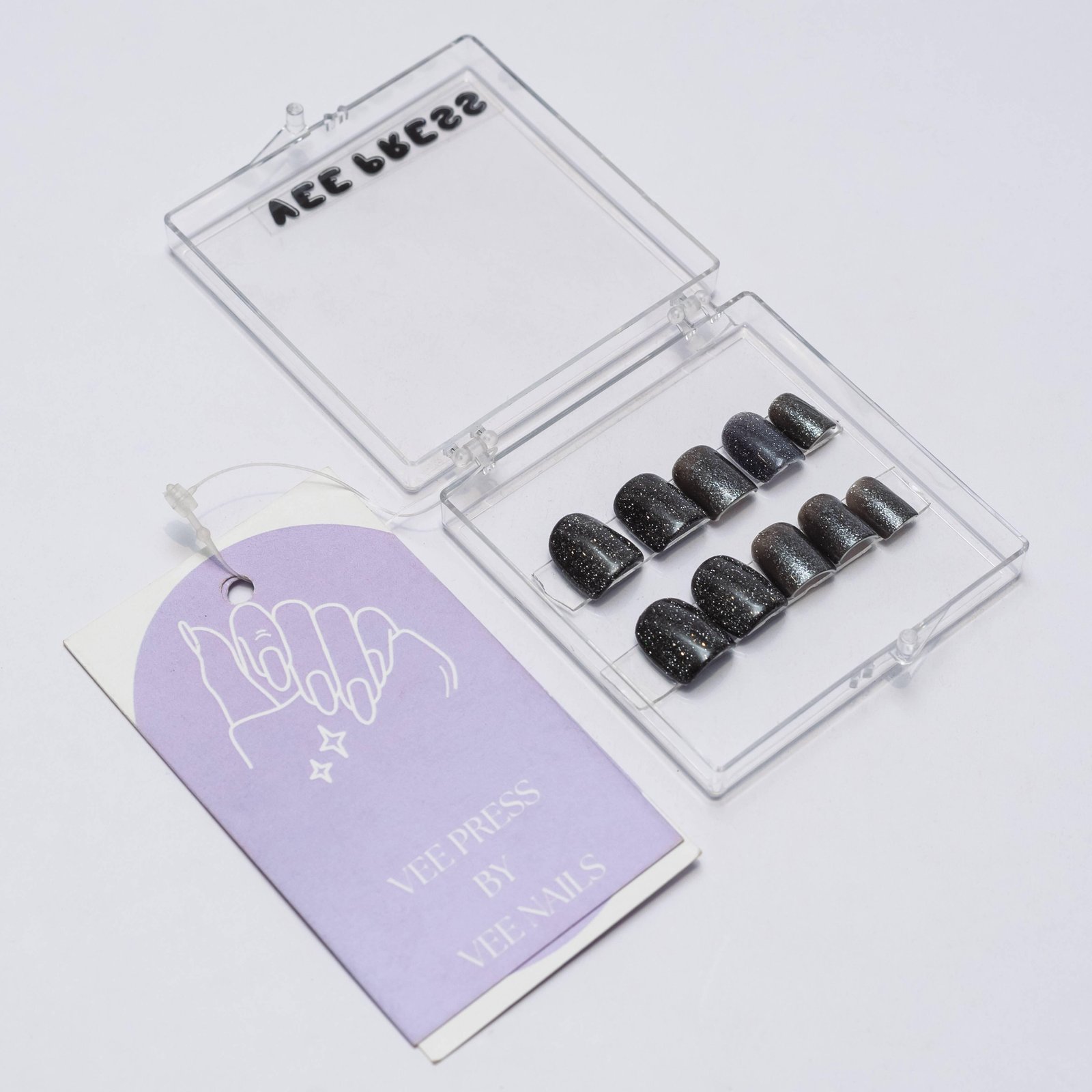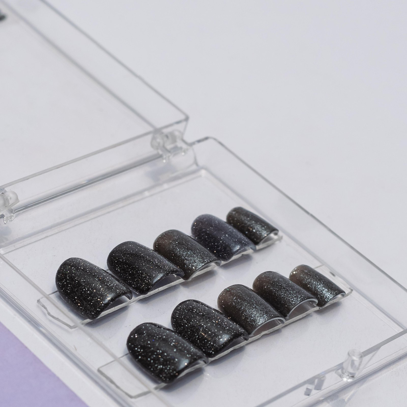 Night Shadow Press-On Nails Add a touch of mystery and sparkle with our Night Shadow press-on nails. These sleek black nails come with reflective glitter that shines even brighter when exposed to light, creating a captivating glow. Perfect for adding an edgy yet glamorous look to your nails. Where to Use: Perfect for a night out, parties, or any event where you want your nails to stand out and shine. Whether it's a special occasion or just to elevate your everyday style, Night Shadow nails add a bold statement to your look. Ideal for anyone who loves unique and dramatic nails!